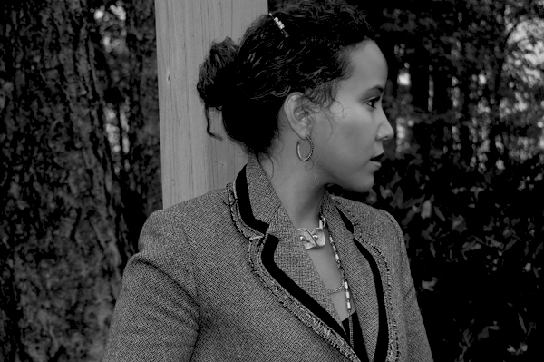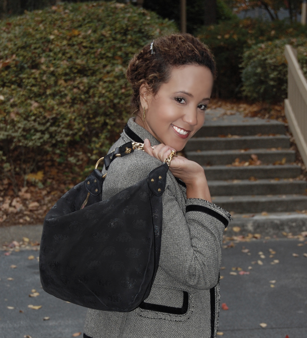 BR top and tweet blazer// French Connection cord skirt// Juicy Couture chain bag// DKNY tights// L.A.M.B “Justice” pumps// Vintage Sarah Coventry double-link gold chain and vintage choker// Vernier watch// Jade ring from Loehmann’s// Liz Palacios earrings.