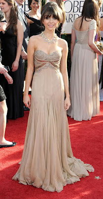 The first look I saw was my Latina sister, J.Lo in what could have been a fabulous dress. I like the concept of wearing white and even the silhoutte was sexy. But the sheer & sparkly wannabe bolero killed any hopes the gown had. And then I’m still very conflicted with Olivia Wilde’s Marchesa gown. There’s something that speaks to me and something stronger that screams “I used to be 20 galaxies but I was asked to explode!”