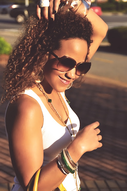 Love it all! The white, with the gold, the hair and the sunglasses, the hat, the bag. Yup – that's all of it. Very summer chic 🙂