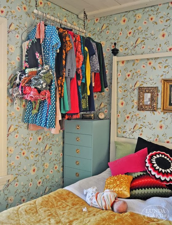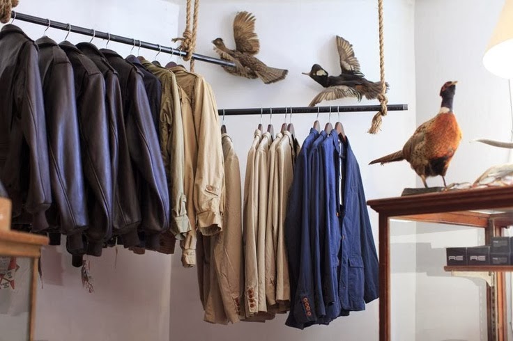 I know exactly what I want. Kind of. Simply to maximize space and hang my 1/8 of my clothes from the ceiling so that I can use the bottom half to properly stow hat boxes, shoes, etc… w/out having to play tetris every time I need to access something. Plus, a suspended rack is just sexier. More modern. More practical. The question is to go industrial with steel bars and wires or more rustic, natural, or ethereal with rope and thick branches from my own yard. I’m leaning toward the latter. It’s more green, too.