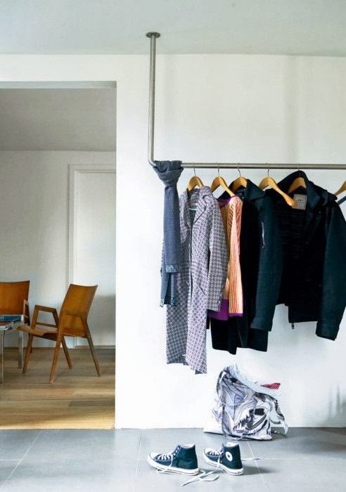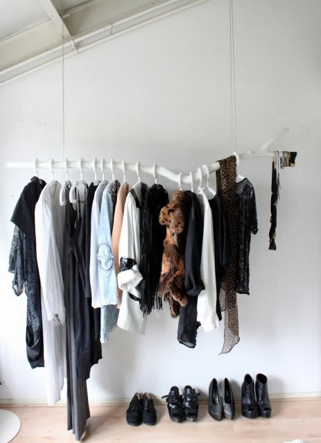 Because of super limited, NY-style studio living space I’m currently surrendering to, my set up is less than sexy or elaborate. Is organized chaos. But it somehow works. But because I’ve prayed about my next move, I’ve accepted that I’m going to succumb my innate fabulosity to pigeon-hole living until a birdie talks to me. And so I have a project; something I’ve been wanting to do for year now: install a hanging garment rack. Genius. Or just practical. Whatever it is, I’m going to do it and have found the perfect person to make it all come true.