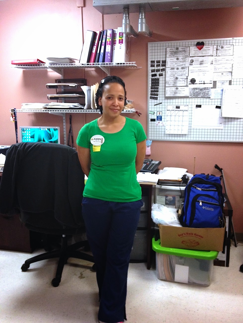 (Just this morning, arriving to work… in her usual uniform…which is 6 days/wk) |