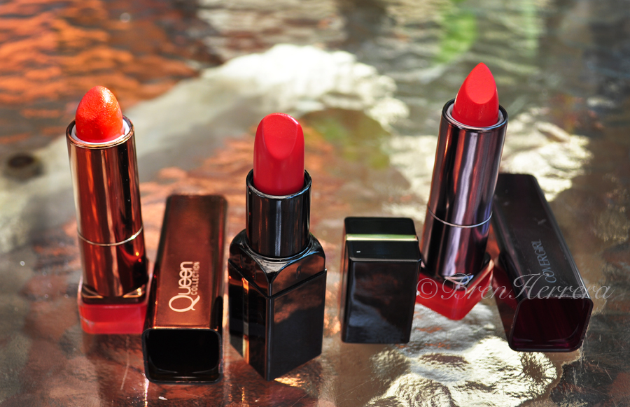 | L-R: Covergirl “Into the Red” Queen Collection, Artistry, Covergirl “Hot” |
