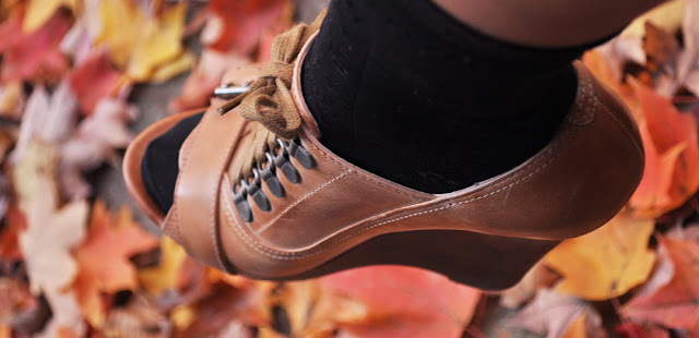My really old loung-y pants (with a hole in the butt–for real) are too long for me so I was *forced* to wear some fab wedges.
