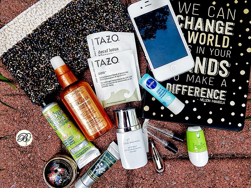 I already know I carry too much. I’m the quintessential bag lady. I have a bag for everything. Literally. As much as I’ve tried in true earnest to scale down, it just doesn’t happen. I’m not talking about just scaling back on the number of bags I own, but also the number of bags I have in my main bag. I swear I have a good reason, though. Travel! With all the traveling I do, I have to carry a big carry-all which fits everything I may need for a day’s work. The trouble of switching bags when I’m back and forth is too much so I end up with the same bag for a while. And this fabulous blue one has been it this summer. My lovely prized possession for everything. It’s become my home away from home. It fits everything! Can’t you tell!?! ¡Todo! Demasiado! Too much acclaim, I first showed it off here. But I have a method to this madness. It’s all organized, you see. A black makeup bag featured in this post, holds all of my daily (and short travel trips) makeup. I’ve wavered from these prods few times. I’ve edited them down to ensure I have something for any occasion. Glosses are must so I’ve been hooked on L’Oreal’s new ‘orange tempo‘, Artistry Beauty’s, one by Smashbox you can’t see cuz it’s in the bag, a nude one from Aerin‘s new fall collection and a bright pink crayon by NYC in ‘bathroom blush’. What you can’t see in the bag are my matte lipsticks. My EL pure envy and Laura Mercier ‘caviar.’ Those are my go-tos. And then mascara (I alternate between L’Oreal’s butterfly, Smashbox and Lancome‘s oscillation) and my two must-have eyeliners by Smashbox (have you tried them!??! Heavenly! especially that French Navy). I’m finally getting used to and love the idea of not leaving home without eye correctors… a long day will do it to you! Shiseido‘s sheer eye zone corrector is my pal these days. Keeps me looking super vibrant when I’m really yawning inside. Lip balm, powder, blush, and a few more lipstick options. It’s a lot! That black bag is literally splitting at the seams. But then there’s the blue smaller catch-all bag which is for my essentials: floss, hand sanitizer, Neosporin, tweezers, nail polish — I’m notorious for doing my nails on my way to church and Lancome’s grayish color is perfect for any fete — hand lotion — loving on that L’Occitane Vitora Regia tube — and the Les Couvent des Minimis Gardner’s Hand Health (I keep that in a real small exterior pocket for quick access). And a super cute fresh breath spray saying ‘Hello!’ — you know… garlic fries or lots of espresso will do it to you. My vintage pill box stays there, too, for those pounding headaches that just creep up on me. I don’t move about without that little blue bag. It has spare battery for my iPhone… and cables of course. A charger for the car in case I end up in someone else’s ride… that happens a lot, you know. A threading kit is essential (scoop them up at your next hotel stay!) for those wardrobe malfunctions. A sharpie! Who knows what for! And I always carry a simple barrette and two-three sample bottles of Jo Malone perfume. Again, you never where you’ll end up! Oh, and the tea is just because. I restock after every trip. Some hotels don’t have teas in the room and I like drinking a cup before I got to bed. Everything else just gets thrown in the bag! The iPad, the iPhone, hair emollient, mini SPF moisturizer (Artistry makes the best travel size everything I can take anywhere and it actually works. I always carry a journal with me. I find inspiration in just about anything I see, anyone I talk to, or even during a quiet moment at the stop light. I have to pen my thoughts. They could turn into something big! I just need a fabulous pen to match! Any suggestions? This is my latest journal find and I’m totally in love with it. It’s so me. It speaks my mind when I don’t have words. And my latest addition to the big blue bag? A lovely beaded bag I’m using as my wallet… so much more chic than a traditional wallet with lots of slits in it! So, that’s it! In a nutshell (or not!) that’s what’s in my bag! Okay your turn! What’s in your bag? |
